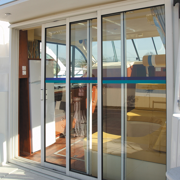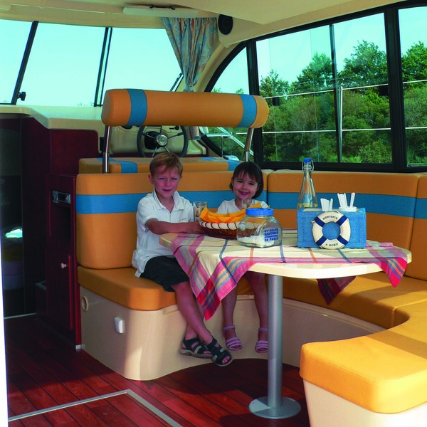 Eine neue Ergänzung unserer Flotte für die Saison 2026: die Cavan hat einen herrlichen, hellen Wohnbereich. Die großen Fensterflächen rundherum bieten einen tollen Ausblick auf die Gegend und am Heck befindet sich ein großzügiger Aussenbereich, gut geeignet auch für ein Essen im Freien.