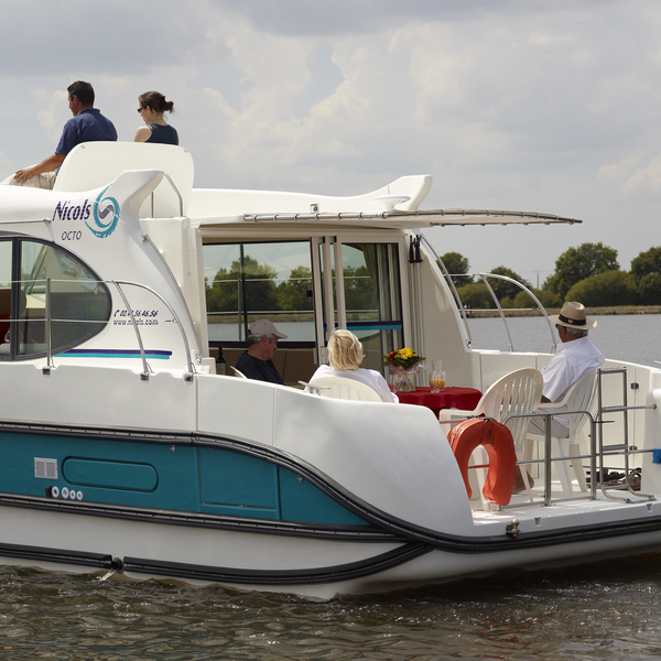 Auf dem Oberdeck befindet sich ein Aussenführerstand. Am Heck findet sich eine Badeleiter und eine Aussendusche. Für leichteres Manövrieren ist die Galway Octo mit einen Bugstrahlruder ausgestattet.